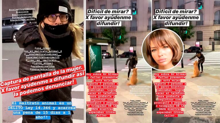 La actriz se hizo eco de la denuncia online del músico Tutti Diez que refleja la violencia de una transeunte contra su mascota.